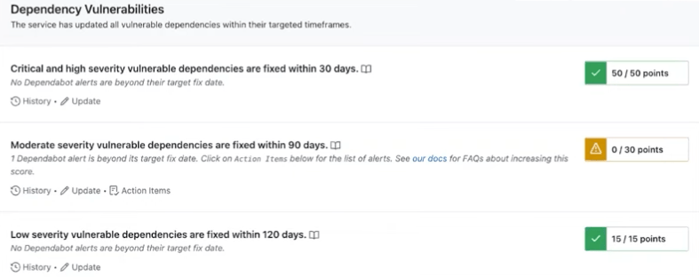 In Github, the security team created score cards assigned to each individual service demonstrating different metrics. This data is kept fresh and updated every couple of hours.